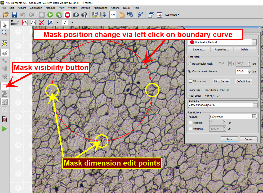 Show Mask tool bar button. It can be moved and resized by mouse, or you can specify its size via the